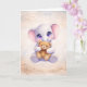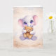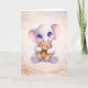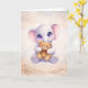 Teilen Sie einen Moment der Wärme und Freundlichkeit mit dieser entzückenden Grußkarte mit Baby-Elefanten. Die charmante Illustration zeigt einen süßen Elefanten, der einen weichen Teddybären umarmt, und fängt das Gefühl von Trost, Freundschaft und Liebe auf die herzlichste Weise ein.