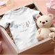 Dieses Kaninchen auf der Kleiderleine in Blau wird sicherlich auf Ihrem Kleinen süß aussehen! Bearbeiten Sie den Text einfach.