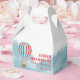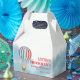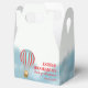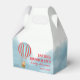 Die Geschenkbox für die Babyparty zeigt einen süßen kleinen Bären in einem Heißluftballon, der über den Wolken fliegt.