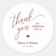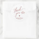 Moderne süße Hochzeit minimalistische Dankeschön-Geschenke klassische Gunst Runder Aufkleber, in klassischer Handschrift Schrift, süßes kleines rotes Herz, mit Namen und Datum des Brautpaares, in Burgunderwein tiefrot.