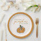 Ein süßer Kürbis ist auf dem Weg und wir sind bereit zu feiern! Diese Babyduschpapier-Teller verfügen über einen handgezeichnet Kürbis, der mit einem Bogen verbunden ist. Originelles Kunstwerk und Design von Annie Montgomery Design.