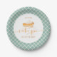 Ein kleiner Süsse-Kuchen ist unterwegs! Kürbiskuchen Baby Duschpapier Teller mit Kürbiskuchen und kariert.