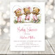 Feiern Sie die bevorstehende Ankunft Ihres kleinen Sonnenscheins, indem Sie Ihre Freunde und Lieben mit dieser Einladung zu Ihrer Babyparty einladen. Die Einladung zeigt drei niedliche Teddybären mit rosa Overalls, die Seilspringen spielen. Der anpassbare Text ermöglicht es Ihnen mühelos Ihren Namen, das Datum und die Uhrzeit der Feier sowie die RSVP-Informationen hinzuzufügen. Eine Vielzahl von Papierarten und Eckstilen stehen für Ihre einzigartigen Einladungen zur Verfügung, zusammen mit der Möglichkeit, sie im digitalen Format herunterzuladen.
