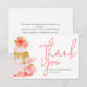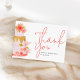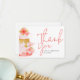 Diese süße moderne Dankeskarte ist für eine Geburtstagsfeier für Mädchen konzipiert. Die Karte zeigt auf einer Seite eine Illustration eines weichen rosa Blumenkuchens. Elegante Schrift-Typografie unterstreicht die "Danke"-Nachricht. Das Design wirkt sanft, warm und fröhlich. Helle Pastellfarben schaffen ein sauberes und modernes Aussehen.