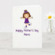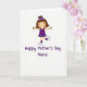 Diese Karte zeigt ein stilisiertes Cartoon-Mädchen, zentriert auf einem weißen Hintergrund, dessen warmes braunes Bob-Haare mit einer violetten Schleife gekrönt ist, die leicht zur Seite geneigt ist. Ihre rosigen Wangen, punktförmigen Augen und das breite, halbmondförmige Lächeln geben ihr den strahlenden Blick, den man sieht, wenn sie auf einen zu stürmt, um einen zu umarmen ❤️. Sie trägt ein violettes Kleid, das mit farbenfrohen Punkten in Rot, Orange, Grün und Blau übersät ist, was der Szene eine fröhliche, freundliche Energie verleiht. Mit ausgestreckten Armen und einem angehobenen Bein deutet ihre Pose auf eine erwartungsvolle Begrüßung und eine süße Nähe hin, die für eine geliebte Oma bestimmt ist. Nahe dem unteren Rand ist die Nachricht "Happy Mother's Day Nana" in Violett platziert, geschrieben in einem lässigen, handgezeichneten Stil, der entspannt und liebevoll wirkt. Die Buchstaben heben sich klar vom schlichten weißen Raum ab, wodurch die Wörter leicht