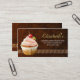schöne Visitenkarte mit Blumenmuster und schöner Entwurfsdekorationskleiner kuchen mit Kirsche, rosiger rosa Creme und braunem Keks. Jeder, das diese Geschäftskarte sofort sah, wollte, um diesen kleinen Kuchen zu essen. So funktioniert es! Es zieht Ihre Kunden 100% an!