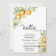 Eine kleine Süsse ist unterwegs! Laden Sie alle zum niedlichen Baby Dusche Party mit einer niedlichen Aquarell Orange Süssen Einladung Vorlagen. Diese orangefarbene Babydusche mit Süsse bietet wunderschöne Aquarellorangen und grüne Blätter mit weißen orangefarbenen Blume in modernem Design.