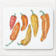 Dieses Mauspad weist ein illustriertes Farbmuster aus roten, orangefarbenen und gelben Paprikaschoten auf. Urheberrecht an Kunstwerken: Dominic White. Alle Rechte vorbehalten.