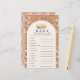 Diese niedliche Baby Dusche Baby Word Rührei-Spielkarte verfügt über einen Kuchen in Bogenform auf einem orangen Hintergrund mit Blumenmuster. Auf der Rückseite ist ein hellorangefarbener Hintergrund mit Blumenmustern zu sehen. Personalisieren Sie es für Ihre Bedürfnisse. In meinem Geschäft finden Sie passende Produkte. Antworten: 1. ABBILDUNG 2. SCHNULLER 3. STROLLER 4. UNTERSUCHTE TIERE 5. KÖRPER 6. TEDDY BEAR 7. FLASCHE 8. KINDERZIMMER 9. FLASCHE 10. FORMEL 11. MILCH 12 KRADLE