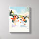 Süße Pinguine spielen im Schnee-Wasserfarben-Kinde Leinwanddruck
