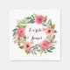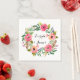 Rose und rosa Aquarellfarben Blume mit Pfirsichen und Creme und ein nur ein Pop Lavendel. Grüne Blätter und Bräune und weiße Federn ergänzen die Blume. Weich, fließend und romantisch. Dieses einfache, aber hübsche Aquarelldesign auf einer Serviette ist perfekt für Ihre Hochzeit, Jubiläum oder anderen besondere Anlass.