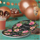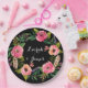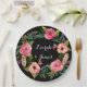 Rose und rosa Aquarellfarben Blume mit Pfirsichen und Creme und ein nur ein Pop Lavendel. Grüne Blätter ergänzen die Blume. Diese fröhlichen Teller haben einen kohlegrauen Hintergrund und einen weißen Skripttext (Sie können die Farbe ändern). Ein sanftes, fließendes, romantisches Design sorgt für einen angenehmen Rahmen für Ihren Polterabend, Jubiläum oder anderen besondere Anlass. Ändern Sie die Formulierung einfach an Ihren besondere Anlass.