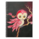 Niedliche, süße rote Eule auf einer Niederlassung mit rosa Blumen. Spaßkunst, die ein großes Geschenk für Kinder, Kinder am Herzen, Eulenliebhaber und Eulensammler machen würde.