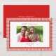 Elegante und einfache retro-style rote und weiße Gingham-Rahmung mit gezacktem Rand Familienfoto-Weihnachtsgrußkarte