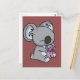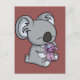 Manchmal brauchst du nur eine gute Kugel mit deinem Lieblings-Kuscheltier! Ein grauer Koala, der ein pinkfarbenes, gestopftes Welpenspielzeug knuddelt.