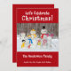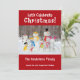 Wenn Sie Weihnachten und Schneemänner lieben, ist diese niedliche Weihnachtskarte der Schneemann-Familie genau das Richtige. Entworfen auf einem hellen festlichen roten Hintergrund enthält der Text: Lasst uns Weihnachten feiern!, Ihren Familiennamen und die Vornamen Ihrer Familienmitglieder. Um es zu personalisieren, fügen Sie einfach Ihren Familiennamen und die individuellen Namen in unsere einfache Vorlage ein und ersetzen den Beispieltext. Beachten Sie, dass es sich um eine einseitige (nicht faltbare) Karte handelt. Die Rückseite hat einen passenden weihnachtlich roten Hintergrund.