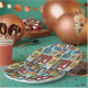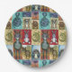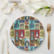 Papier Teller mit einer einzigartigen und farbenfrohen Sammlung von Tieren im Stil der Volkskunst in einem Collage Design. In diesem kreativen künstlerischen Design finden sich eine Vielzahl von Tieren, darunter eine Kobra, Löwe, Hund, Eidechse, Strauß, Zebra, Kaninchen, Gecko, Esel und Eule. Dieses Design hat einen einzigartigen Stil mit einem malerischen und seltsamen Flair. Ich mag es!