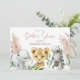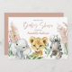 Süße Tier botanische Blumensafari Drehbuch Baby Dusche Einladung. Weiße Blume botanisches Blattwerk und Elefanten, Löwen und Zebra. Skripttext, Teil einer Sammlung, in verschiedenen Farben verfügbar.