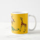 Ein fröhliches, gelbes Bild mit charmanten Cartoon-Illustrationen einer Eule, Schnecke, Panda, Affe, Krokodil und Giraffe.