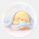 Süße schlafende Babyküken Alma, die unter einer weichen, kuscheligen Decke ruht.