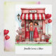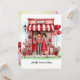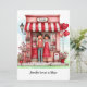 Personalisieren Sie Ihren Valentinstag für ihn oder sie auf dieser süßen flachen Grußkarte, die mit einem bezaubernden Paar und ihrer eigenartigen kleinen Ladenszene bedruckt ist und voller winziger Herzen, Luftballons und Blumen Details. Bearbeiten Sie Ihre Namen, Monogramme und anderen Text vorn und hinten. Wasserfarben illustrierte Darstellung mit abstraktem Pastellhintergrund vorn und hinten. Erstellt in einer Palette aus meist roten und rosa Farben, mit Ihrer Wahl an Größen.