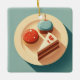 Diese lebendige Abbildung zeigt eine Vielzahl köstlicher Desserts, die sich perfekt für den süßen Zahn eignen. Die Gegenstände sind auf einem beigen Gericht mit hellblauem Hintergrund angeordnet, das längliche Schatten spendet.