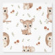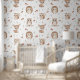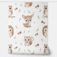 Verwandeln Sie das Zimmer Ihres Kindes mit dieser charmanten Waldtiere-Tapete in einen magischen Wald. Dieses nahtlose Muster zeigt entzückende, handillustrierte Charaktere, darunter ein Rehkalb, einen freundlichen Igel, ein flauschiges Eichhörnchen und eine weise Eule, umgeben von gemütlichen Pilzen und rustikalen Blättern.