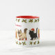 Diese Weihnachtstasse zeigt ein süßes Trio von Katzen in festlicher Kleidung. Die schwarze Katze trägt einen Santa-Hut, die orange getigerte Katze trägt einen rot-weißen Fair-Isle-Pullover und die Ragdoll-Katze hat einen karierten Kragen mit roten Stiefelchen. Das Trio sieht besonders weihnachtlich süß aus. Mit roten Beeren verzierte Stechpalme wurde hinzugefügt, um diese Tasse noch festlicher zu machen. Kaufen Sie diese charmante Tasse als Weihnachtsgeschenk für jeden Katzenliebhaber. Es ist das perfekte Geschenk! KI-Kunst von Susang6 entworfen