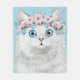 Dieses Ausrüstungsbeschreibungen ein hübsches weißes Kätzchen, das einen rosa und blauen Blumenhalo trägt.