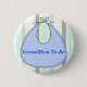 Süße Großmutter, zum Knopf-Button, in einem bunten gestreiften Hintergrund und in entzückenden Grafiken eines Schellfisches des blauen Babys zu sein. Blauer Text über dem Schellfisch liest, GrandMom-Zu-Ist. Vervollkommnen Sie für die neue Großmutter an der Babyparty. Text ist kundengerecht, zu sagen, was Sie wollen.