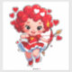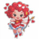 Ein lebhafter Cartoon-Cupid mit Flügeln, einem roten Kleid und einem Bogen fliegt über einen herzförmigen roten Hintergrund. Perfekt für Valentinstag-, Romantik- und familienorientierte Projekte.
