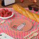 Süßer Erdbeermilch niedlich rosa Pappteller