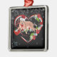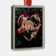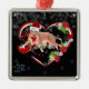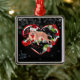 🎄Laden Sie ein Lieblings-Weihnachtsfoto Ihres geliebten Haustieres, natürlich oder bearbeitet, hoch und passen Sie den Namen und das Datum an, oder behalten Sie dieses niedliche Hundebild auf schwarzem Hintergrund mit Schneeflocken und Sternen bei und entfernen Sie die kalligrafische Schrift vollständig von diesem 5 cm x 5 cm großen Metallschmuck. Dieses Foto zeigt einen braunen Hund, der in roten und weißen Herzen liegt und einen Santa-Hut und eine rote Schleife trägt. Sie befindet sich in einer floralen Szene, umgeben von roten Rosen, Blütenblättern, Weihnachtssternen, weißen Lilien, weißen Rosen, blauen Vergissmeinnicht, grünen Farnblättern und grünen und weißen Tannenzweigen. Verfügbar auf verschiedenen quadratischen Schmuckstücken.