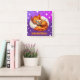 Feiern Sie die Ankunft Ihres kleinen Mädchens mit dieser entzückenden Babyzimmeruhr, die ein illustratives Bild eines niedlichen jungen Fuchswelpen mit goldenem, flammenartigem Fell zeigt, der glücklich in den sternenklaren Nachthimmeln träumt. Anpassen mit dem Namen des Babys, Datum und Uhrzeit der Geburt, Geburtsgewicht, Körperlänge bei der Geburt und sogar der Hintergrundfarbe.