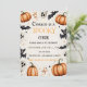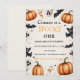Fügen Sie Ihren eigenen Text zu dieser gruseligen Halloween-Geburtstagseinladung hinzu! Es zeigt lächelnde Geister, Fledermäuse, Kürbisse und Sterne auf einem leeren Hintergrund — perfekt für Kinder und Familien, die Spaß und Grusel lieben.