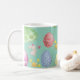 Dieser hochwertige Keramikbecher mit hellgrünem Hintergrund ist mit einem bezaubernden nahtlosen Muster aus handgemalten Hasen, farbenfrohen Ostereiern und zarten Frühlings-Schmetterlingen verziert. Die künstlerische Wasserfarben-Textur und die märchenhafte Ästhetik machen ihn zu einer erfreulichen Ergänzung für Ihr Osterfrühstück oder einen gemütlichen Nachmittags-Tee.