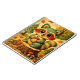Eine charmante Illustration eines Waschbären mit großen Augen, der eine Eichel hält und auf einem Baumstumpf inmitten eines farbenfrohen Herbstwaldes sitzt. Umgeben von lebendigen Herbstblättern, Pilzen und immergrünen Bäumen, beschwört diese spielerische Waldszene ein gemütliches, nostalgisches Gefühl herauf. Der texturierte, malerische Stil verleiht ihr eine handgefertigte, märchenbuchartige Wärme.