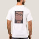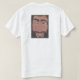 T - SHIRT MIT SÜSSEM JESUS-LOGO AUF DER FRONT UND DEM FOTO DER MALEREI VOM KÜNSTLER KATRINA VON JESUS LÄCHELND UND SEINE SIVER KAPPEN VORFÜHREND, DIE LASEN "JC"