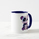 Ein süßer kleiner Panda, der mit weichem Blick und sanftem Ausdruck sitzt, lenkt die Aufmerksamkeit mit seinen großen runden Ohren und lila Flecken, die ihm ein Original geben, und sein glattes Porzellanaussehen verleiht ihm Charme.