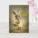 Feiern Sie die Freude des Frühlings mit dieser bezaubernden Osterkarte mit einem süßen Hasen in einem sonnengelben Kleid und Blumenkranz, der einen Korb voller bunter Ostereier hält. Umgeben von weichem goldenem Licht und flatternden Schmetterlingen fängt dieses märchenhafte Design die Wärme, die Freude und die Erneuerung der Osterzeit ein. Eine charmante Karte, um festliche Ostergrüße an Freunde, Familie oder jeden, der niedliche Hasenkunst und fröhliche Frühlingsbilder liebt, zu senden.