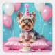 Dieser Aufkleber zeigt einen süßen Yorkie mit einer rosa Geburtstagshut, einem Cupcake und einigen Diamanten und Ballons. Adorable zum Verschließen von Geburtstagseinladungen oder Gefallen-Tüten!