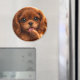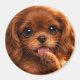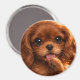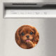 Süßer Ruby Cavalier Spaniel Magnet. Der Spaniel leckt seine Pfote in einer süßen Pose