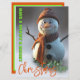 Verbreiten Sie Urlaubsfreude mit diesem Schneemann-Weihnachten und zeigen Sie eine gemütliche Winterstimmung und fröhliche Farben. Das Design vereint Wärme und Schneemagie: Ein lächelnder Schneemann mit einem gestrickten Schal, Eukalyptusblättern und der festlichen Botschaft "Ein schneereiches und helles Weihnachten". Perfekt, um Freude, Lachen und gemütliche Weihnachtswünsche an Freunde, Familie und auch Kinder zu verbreiten. Sie können Ihren Text/Ihre Wünsche hinzufügen.