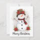 Verschenke ein bisschen Weihnachtsstimmung mit dieser bezaubernden Weihnachtskarte 'Süßer Schneemann Merry Christmas'! Dieses charmante Design zeigt einen lächelnden Schneemann, der für die Saison in einen braunen Zylinder, einen festlichen roten und grünen karierten Schal gekleidet und mit leuchtend roten Weihnachtssternen und Stechpalmenbeeren dekoriert ist. Die Illustration im Wasserfarben-Stil und die subtile Hintergrundstruktur verleihen ihr eine warme, künstlerische Note.