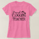 Süßer stolzer verstopfenlehrer im Schwarzen mit T-Shirt