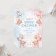 Feiern Sie Ihren besonderen Tag mit dieser entzückenden Teddybär-Babyshower-Einladungskarte mit sanften pastellblauen und rosa Ballons, flauschigen Wolken und süßen Babybären, die Ballonbouquets halten.