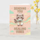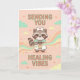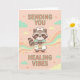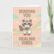 Süßes Waschbär-Krankenschwester-Karte sendet Ihnen heilende Schwingungen, Gute Besserung Geschenk, Kawaii Medizin Grafik Karte.