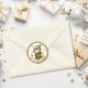 Versenden Sie Ihre Feiertagskarten und Einladungen mit diesem Faux-Wachs-Siegel-Aufkleber mit einem süßen Weihnachtself auf einem Blatt als Hintergrund. Die perfekte Umschlagversiegelung in dieser Weihnachtszeit.