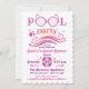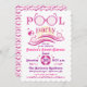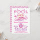 Moderne Pink 16 . Geburtstag Pool Party Einladung. Die Sommersonne, die Wellen, der Strandball, die Innenröhre und die Sonnenbrille bilden das Wort "Pool". Auf der Rückseite der Karte befindet sich ein niedliches Wellenmuster. Klicken Sie auf die blaue Schaltfläche "Anpassen", um Ihren eigenen Text hinzuzufügen. Originalbild von pj_design.