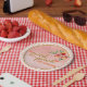 Süßes als Pfirsichplatte - Gingham (P) Pappteller